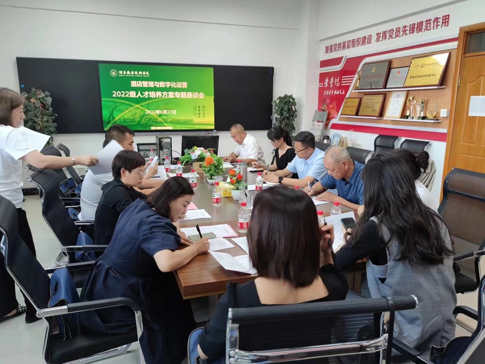 下午,学院四个专业邀请合作企业进行了旅游管理专业群2022级人才培养方案论证工作。各专业负责人对人才培养方案以及专业的不同培养模式进行了汇报,并对人才培养方案的培养目标、培养要求、核心课程、学时和学分、课程体系、培养过程和培养模式、考核方式、毕业要求、教学进程表、选修课程等有关项目和企业家们进行了深入的探讨和交流,对今年制订中要关注的新变化、新举措和注意事项进行了阐述,尤其是对培养目标、实习实践以及“1+X”证书考核的植入要求进行了强调。