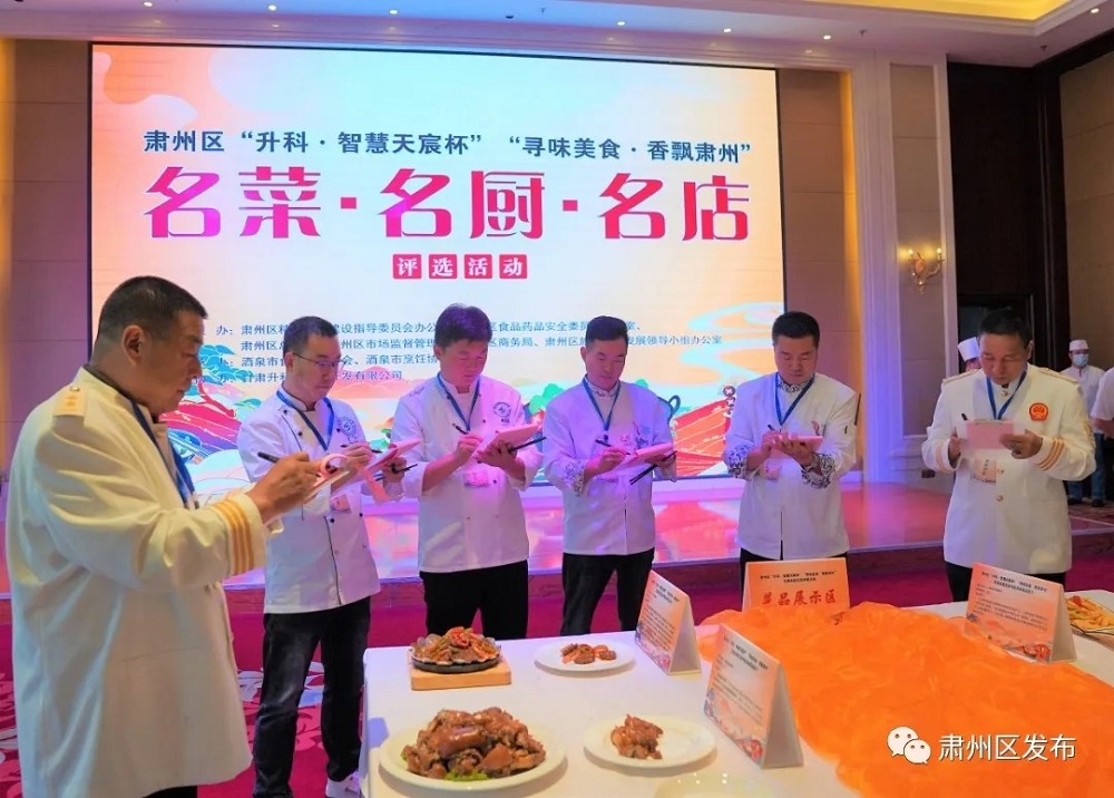 2022年8月25日,由肃州区精神文明建设指导委员会办公室、肃州区食品药品安全委员会办公室、肃州区商务局、肃州区市场监督管理局、肃州区总工会、肃州区旅游产业发展领导小组办公室联合举办的2022年肃州区“寻味美食·香飘肃州”名菜名厨名店评选活动在酒泉饭店隆重举行,我院烹饪工艺与营养专业四名教师受邀担任此次大赛的评委。