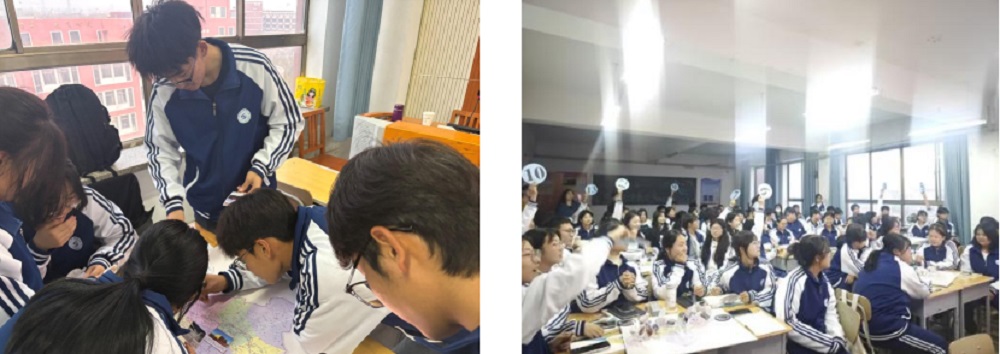 在了解了酒泉概况后,同学们迎来了趣味性与知识性并重的研学实践环节——“拼出大美酒泉”。活动要求各小组通力合作,快速、准确地拼装完成酒泉市完整的行政区划地图,并将代表各地特色美景与美食的图卡精准粘贴到对应的地理位置之上。这一环节不仅考验了同学们对刚学习知识的消化吸收能力,更锻炼了团队协作精神、动手能力以及对地理空间的认知能力。通过亲手拼接与标注,酒泉一区两市四县的地域分布、资源特色以一种生动有趣的方式深深印刻在了同学们的脑海中。