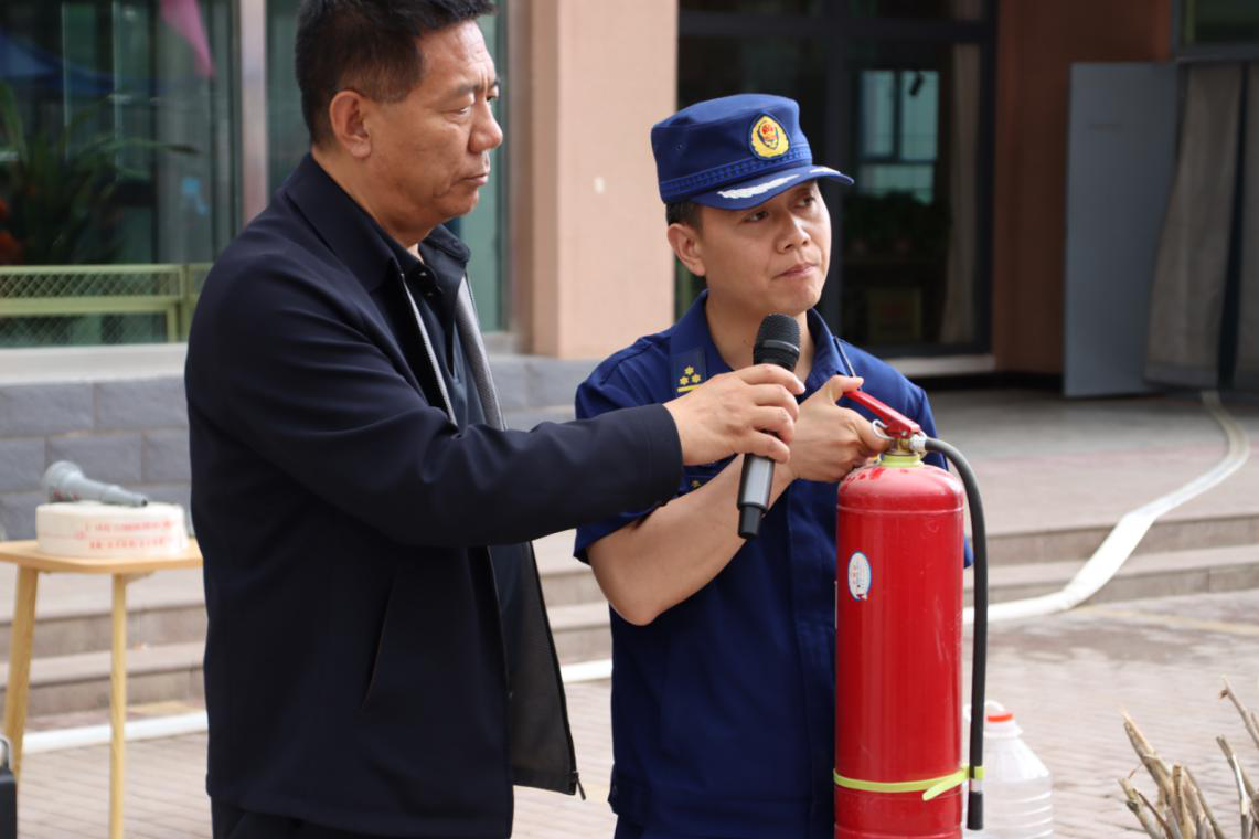 演练分为理论培训与实操演练两部分。消防员结合校园火灾案例,重点讲解灭火器使用、疏散逃生及初期火情控制要点。