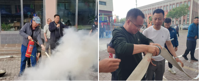在灭火器实操环节,创新创业学院科技园公司所属工作人员上手操作,掌握提、二拔握、”四步技巧;安保团队演练消防水带快速连接,确保突发情况下能高效配合专业消防力量。