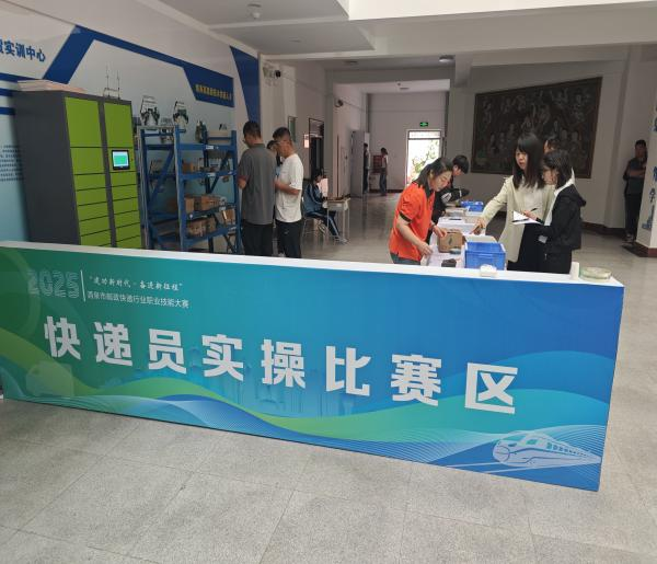 大赛紧密围绕快递员、快件处理员两大核心岗位,设置"理论知识+实操技能"重考核体系,涵盖多物品收寄、智能快递柜操作、总包拆封、异常快件处理四个竞赛项目。在多物品收寄环节,选手需精准识别违禁品,同步运用环保材料完成绿色包装设计,既考验安全底线意识,又融入低碳发展理念;智能快递柜操作中,选手凭借扎实的行业前沿知识和敏捷的操作手法,高效完成快件入柜全流程,充分展现数字化时代的职业技能水平。
