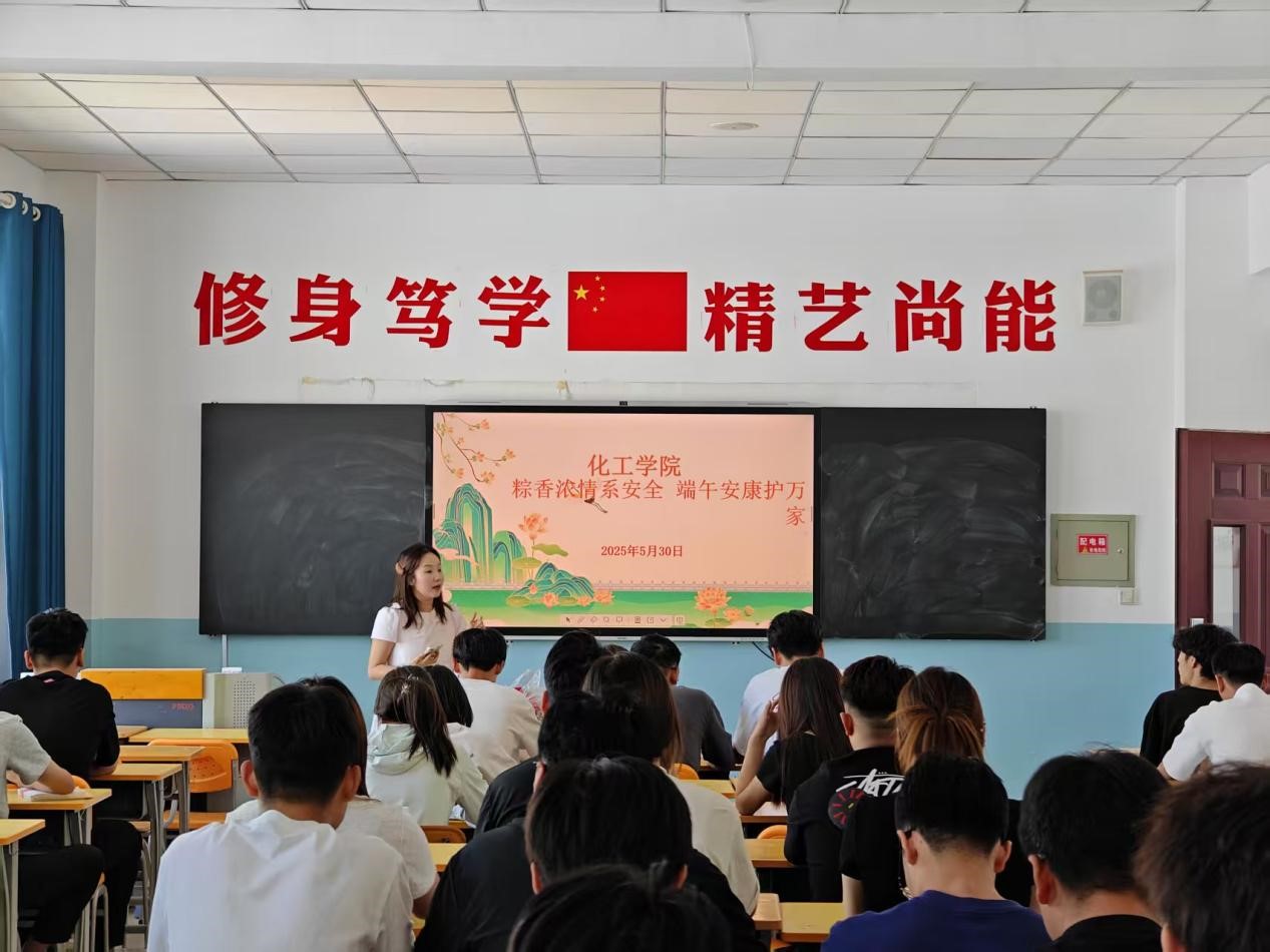 5月30日,化工学院在逸夫楼B座401教室举办了"粽香浓情系安全,端午安康护万家"端午节主题活动。化工学院团委副书记刘康丽老师与2023、2024级70名团学干部共同参与了此次活动。