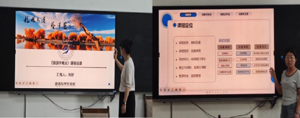 院系动态 > 正文为进一步强化职业本科思维,搭建“借鉴交流、统一思想、互促共长”平台,深化模块化课程开发与能力导向教学改革,保证本科教学“起好步、定好型、育好人”,结合前期理论学习与实践研讨,按照职业本科“四定”任务,6月4日下午开展旅游管理专业职业本科课程说课活动。活动中,6门课程负责人依据课程标准,从教学目标、课程定位、教学内容、方法手段、教学设计、教学评价、教师素养等多个关键维度,对整门课程的总体规划与内容进行了全面介绍。