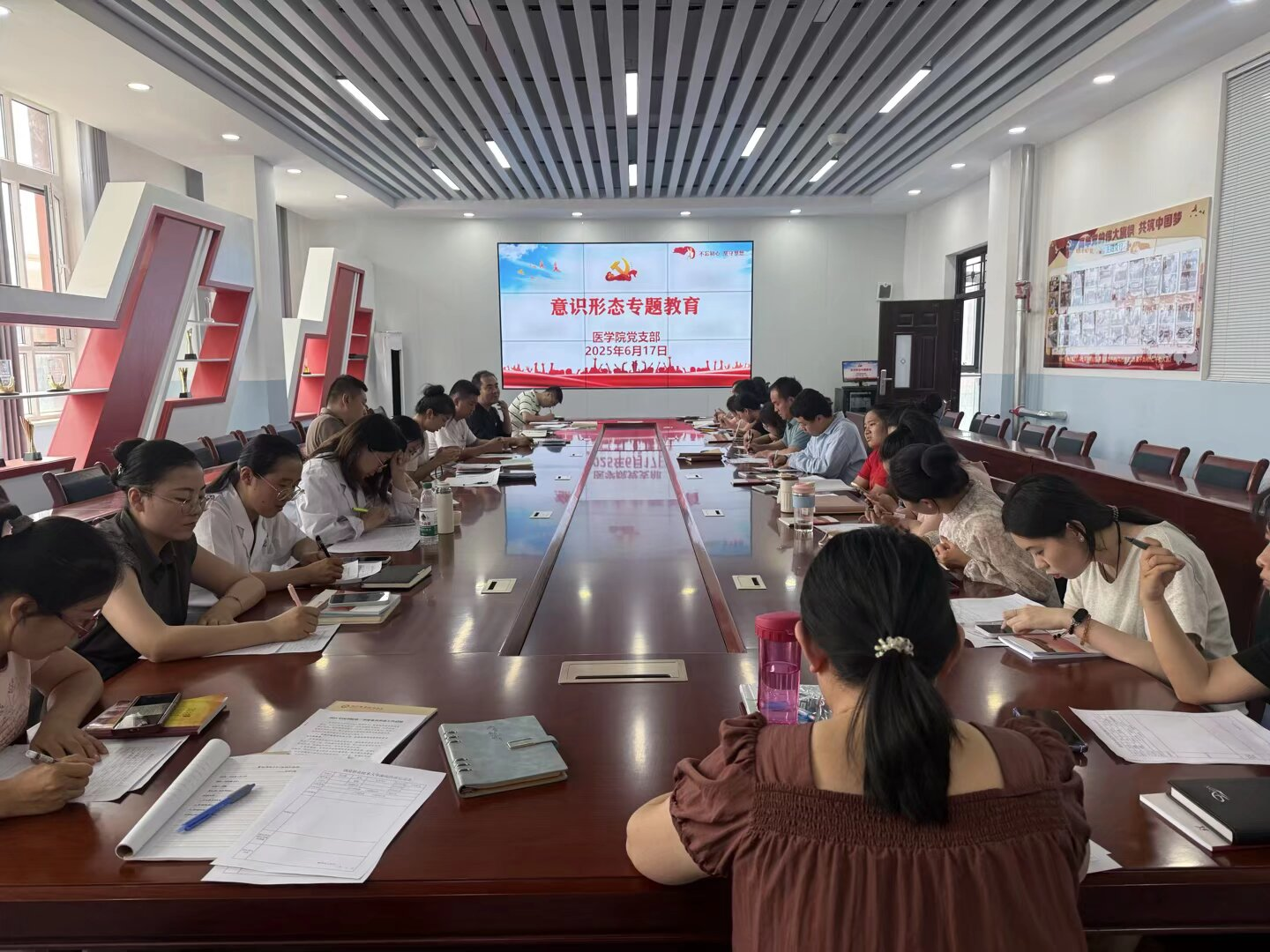 为提升全体教职工政治素养,筑牢思想防线。6月17日,医学院在弘远楼A501会议室召开了意识形态专题会议。会议由医学院党支部书记、院长范玉敏主持,全体教职工参加。