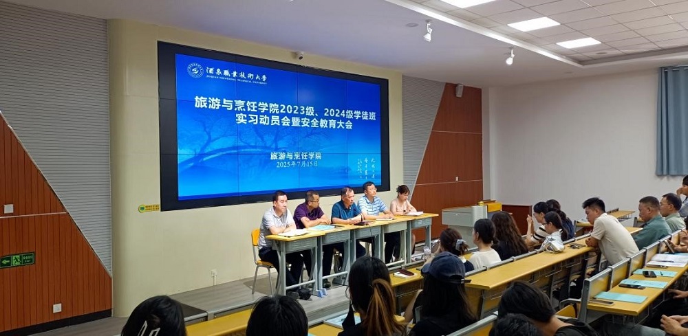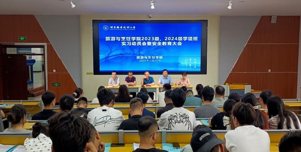 院系动态 > 正文2025年 7月15日,旅游与烹饪学院在行知楼东阶梯教室隆重召开2023级酒店管理与数字化运营、烹饪工艺与营养专业实习动员会。副院长董轩主持了会议,学院党支部副书记、院长刘兴龙、党支部书记张来顺、副院长马东邦、副院长杨蕊肇出席了会议,为即将踏上实习征程的200名旅游学子指引方向、保驾护航。