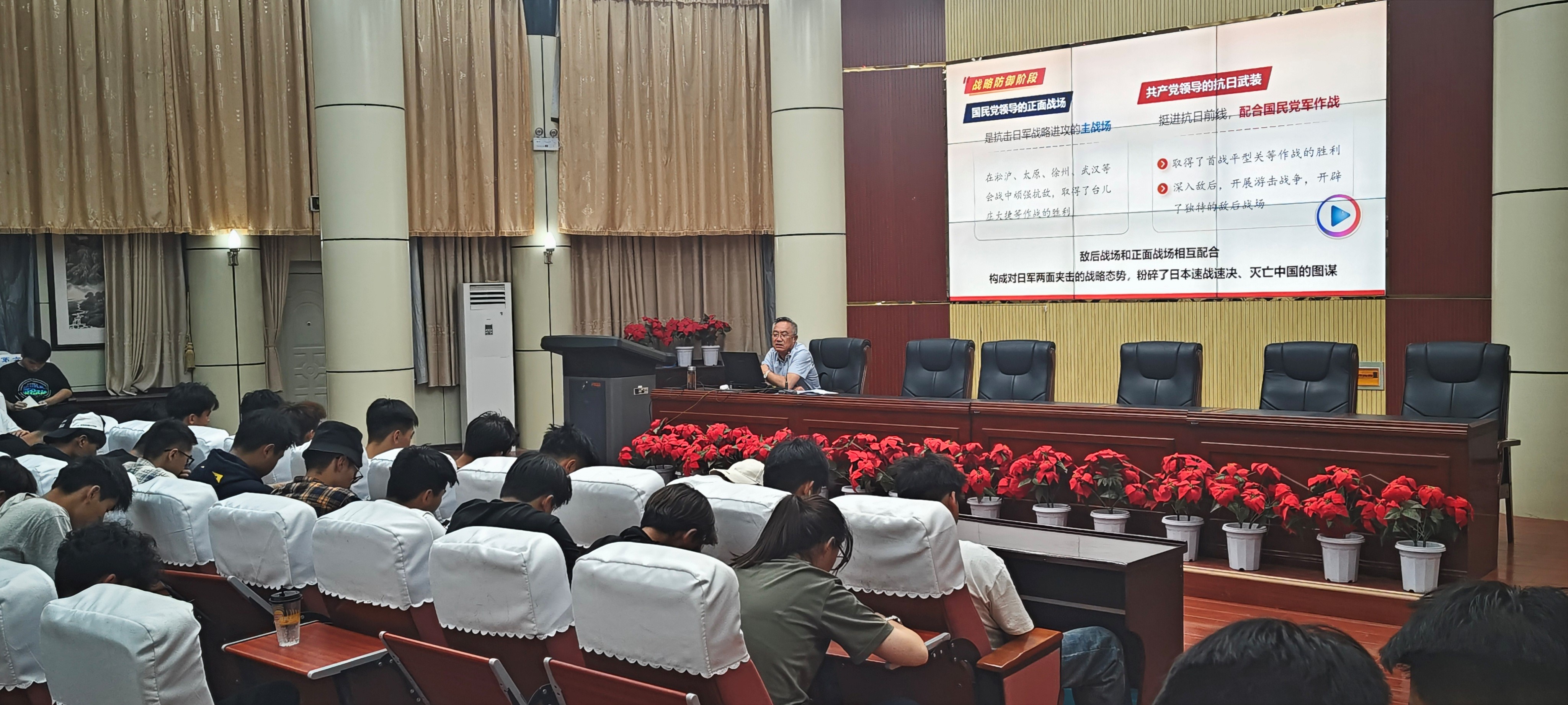 9月4日晚,学校党委委员、宣传统战部部长李文有以“纪念抗战胜利 坚定民族信念”为主题,为化工学院2024级学生讲授秋季学期“形势与政策课”第一课,给广大学生带来了一场思想盛宴。