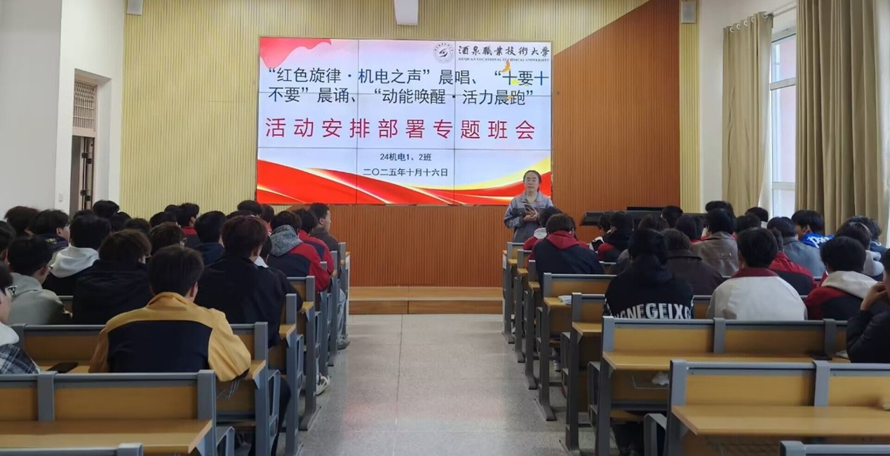 按照活动计划,每周一、周三、周五早晨7:30,校园里便准时回荡起机电学子嘹亮的歌声。晨唱曲目经过精心挑选,既有团歌《光荣啊,中国共青团》这样的青春誓言,也有《强国有我》的时代强音;既有《我的中国心》的深情眷恋,也有《当那一天来临》的豪迈担当。特别值得一提的是,校歌《我们是胡杨的种子》是必唱歌曲,歌声中传递出“扎根大漠,荫泽苍生”的胡杨精神。