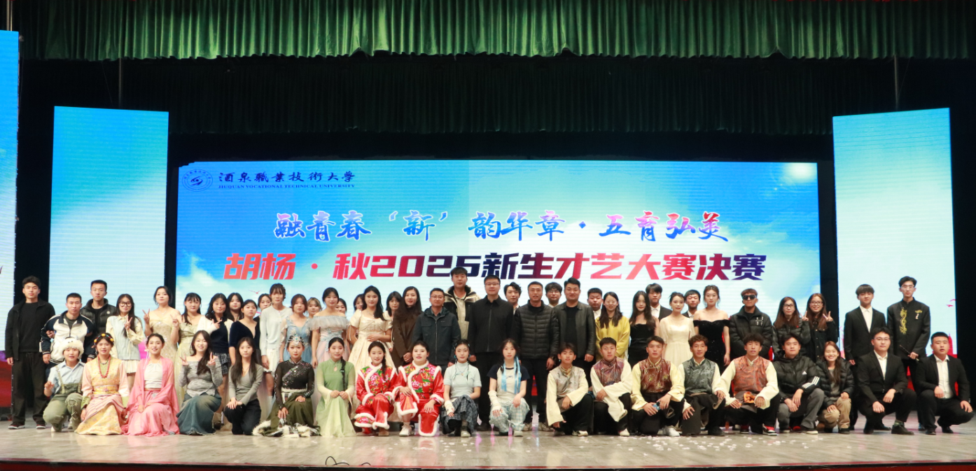 院系动态 > 正文11月6日晚,随着最后一个音符的完美落幕,为期一个月的"融青春‘新’韵华章·五育弘美——胡杨·秋2025级新生才艺大赛决赛"在学校胡杨文化活动中心圆满收官。本届大赛以"五育融合·以美育人"为核心,为新生搭建了展示艺术才华、提升综合素养的实践平台,有效激发了在校生对文化艺术的热爱,集中展现了新时代青年学子昂扬向上的精神风貌与蓬勃多彩的青春风采。