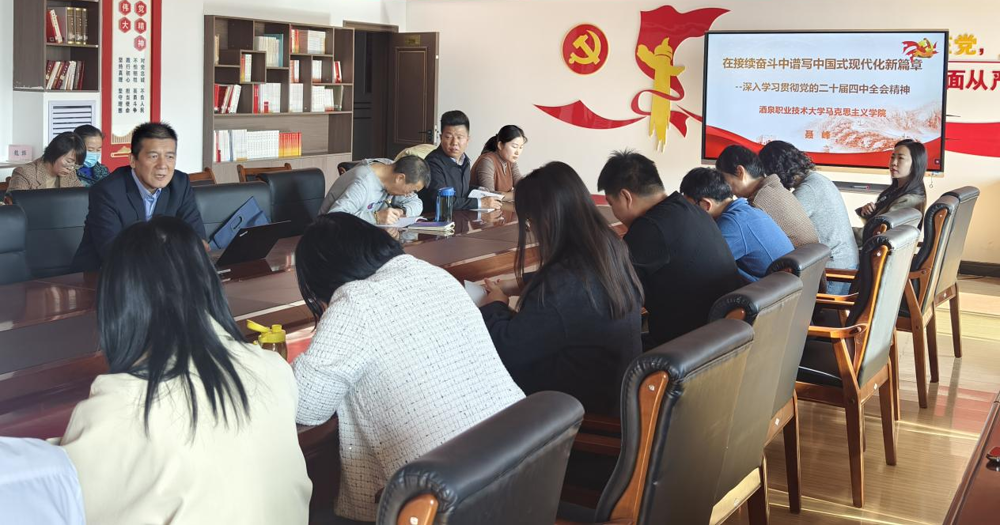 院系动态 > 正文为深入学习贯彻习近平新时代中国特色社会主义思想,扎实推进2025年党员党性教育工作,全面落实党的二十届四中全会精神,2025年11月3日,马克思主义学院党支部书记聂峰同志以“在接续奋斗中谱写中国式现代化新篇章——深入贯彻党的二十届四中全会精神”为题,讲授专题党课,学院全体党员、教师参加学习。