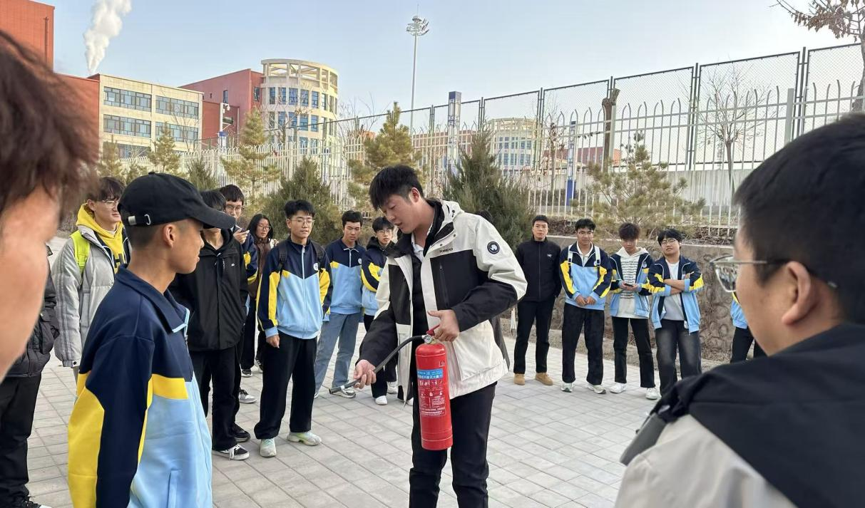 活动以“教育+演练+实训”三位一体模式系统推进。在教育层面,学院于11月9日晚组织全体班级召开“安全用火用电”主题班会,集中观看聚焦高校实训室、学生宿舍等真实场景的消防安全警示教育片,通过典型案例强化学生的火灾防范意识。在实战演练方面,11月19日中午,学院在至诚轩公寓开展全员消防应急疏散演练,通过周密预案制定、明确疏散路线和规范引导,确保全体学生迅速有序撤离至安全区域,有效提升了师生的应急反应和协同疏散能力。当日下午,学院联合学工部开展消防器材实操实训,组织各班学生代表系统学习灭火器构造原理与“提、拔、握、压”操作要领,并通过轮番实战灭火演练,确保学生真正掌握初起火灾扑救技能。