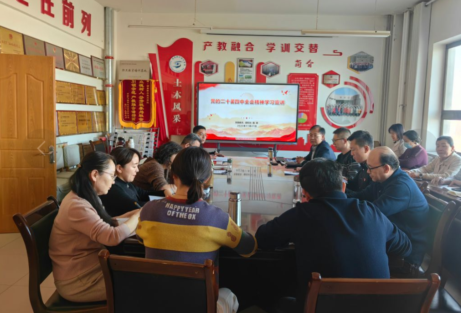 施荣教授结合土木工程学院发展实际强调,要持续深入学习贯彻党的二十届四中全会精神,不断提高政治判断力、政治领悟力、政治执行力,坚持和加强党对学院全面深化改革的领导。要聚焦国家重大战略部署与行业发展前沿,围绕人才培养模式创新、专业结构优化、学科建设提质、实训基地升级、教师队伍培育、智能建造中心建设等重点任务,系统谋划、扎实推进各项改革举措落地见效,不断增强职业教育适应性和服务发展能力。