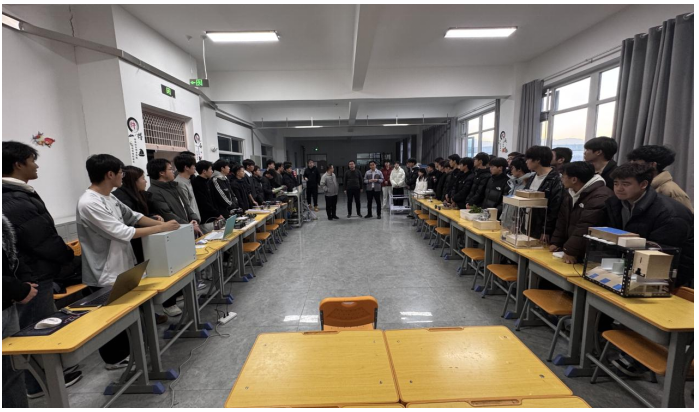 为全面展示机电工程学院电气自动化技术专业实践教学改革成果,激发学生对专业知识的学习热情,2025年12月12日下午,电气自动化技术专业《专业技能应用实践》课程作品展在格物楼电机综合控制实训室和电子技术实训室举行。学院和科研处领导、指导教师及2024级电气自动化技术专业130余名学生参加了本次活动。