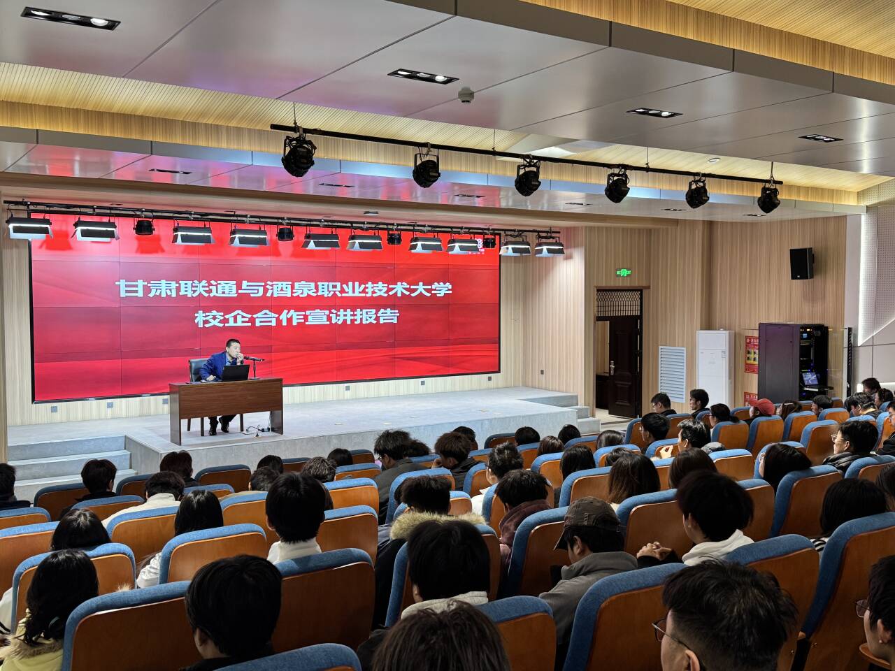 黄战军介绍了中国联通的发展历程、企业文化及战略布局,结合信息通信行业技术趋势与区域人才需求,为同学们剖析了职业发展方向、能力素质要求,并介绍了甘肃联通公司2026年度招聘岗位、实习计划与培养体系。