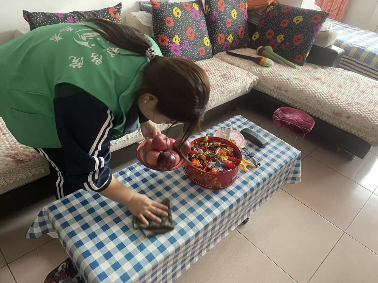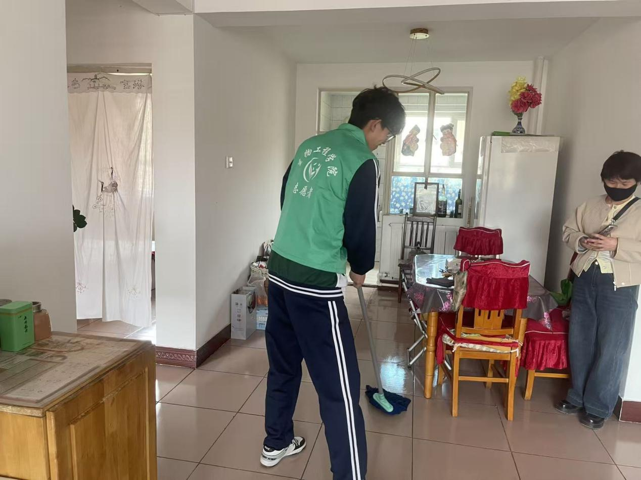 另一组志愿者则组成了“爱心家政服务队”,在工作人员的引导下,走进部分高龄、行动不便或独居的长者家中,开展卫生清洁志愿服务。同学们手持扫帚、抹布等工具,分工协作,认真细致地帮助老人打扫客厅、厨房、卫生间,擦拭门窗桌椅,整理家居物品。劳动过程中,志愿者们还与老人们亲切交谈,详细询问他们的身体状况和生活情况,倾听他们的心声与故事,叮嘱他们保重身体。原本安静的屋子,因为志愿者们的到来充满了欢声笑语和融融暖意。