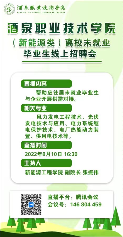 酒泉职业技术学院(新能源类)离校未就业毕业生线上招聘会