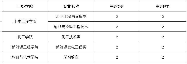 酒泉职业技术学院2022年宁夏普通高考招生计划