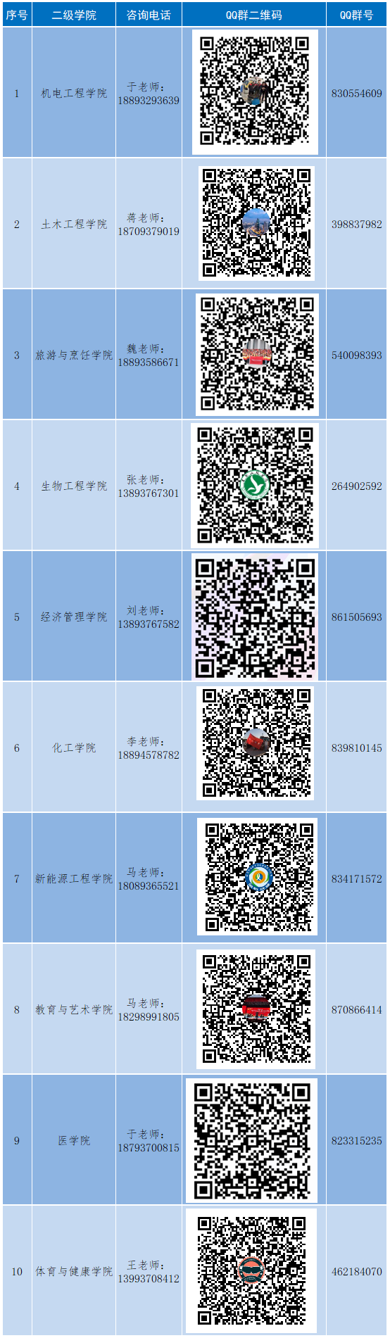 各二级学院招生宣传咨询QQ群