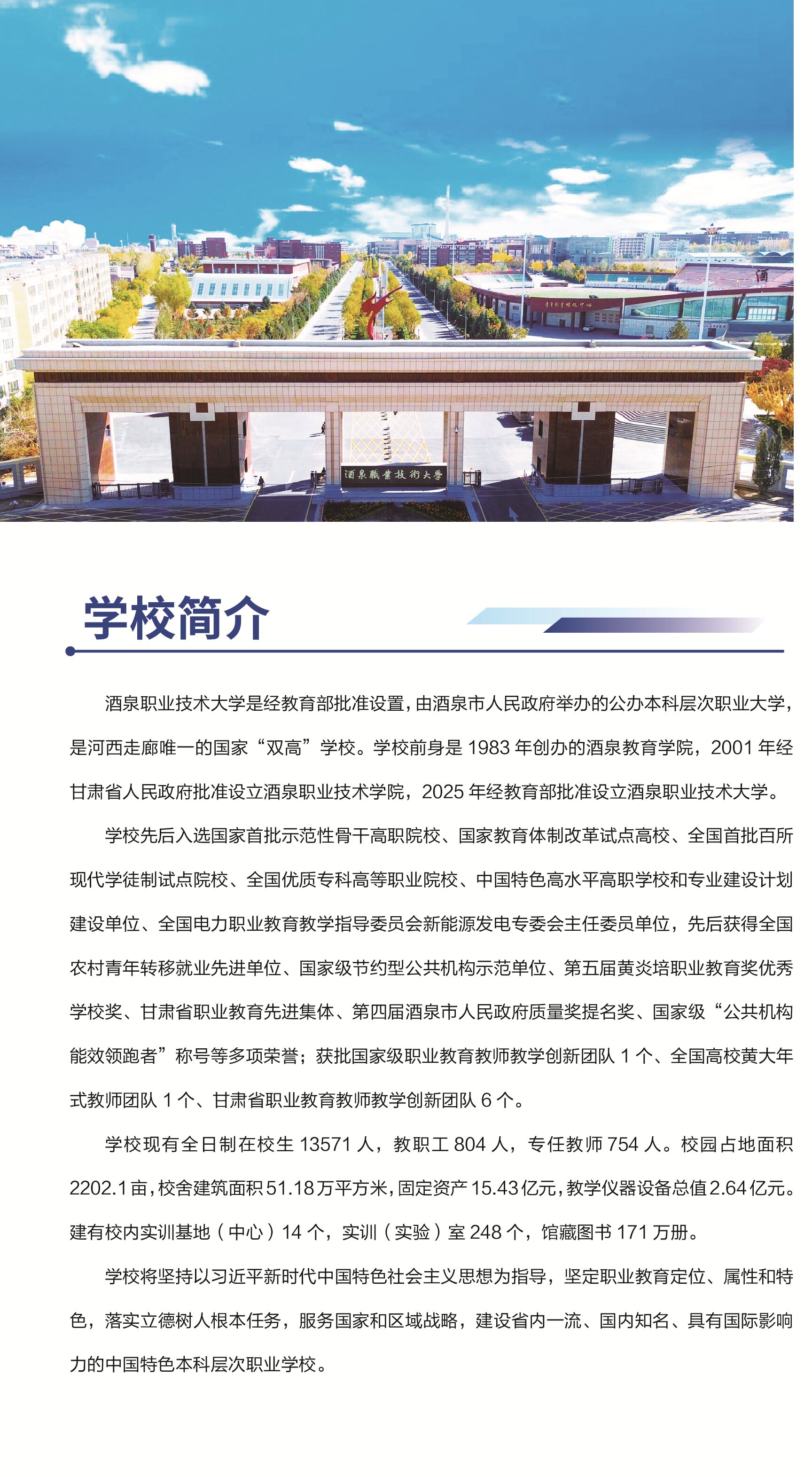 酒泉职业技术大学2025年招生章程