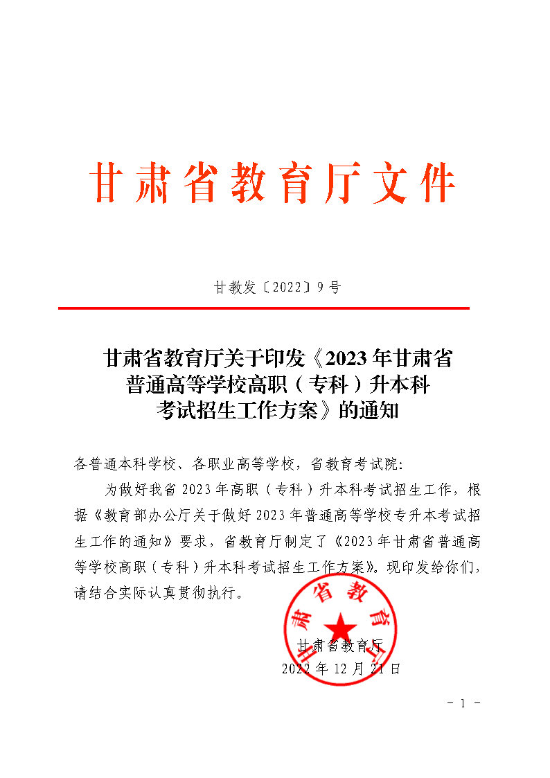关于印发《2023年甘肃省普通高校高职(专...