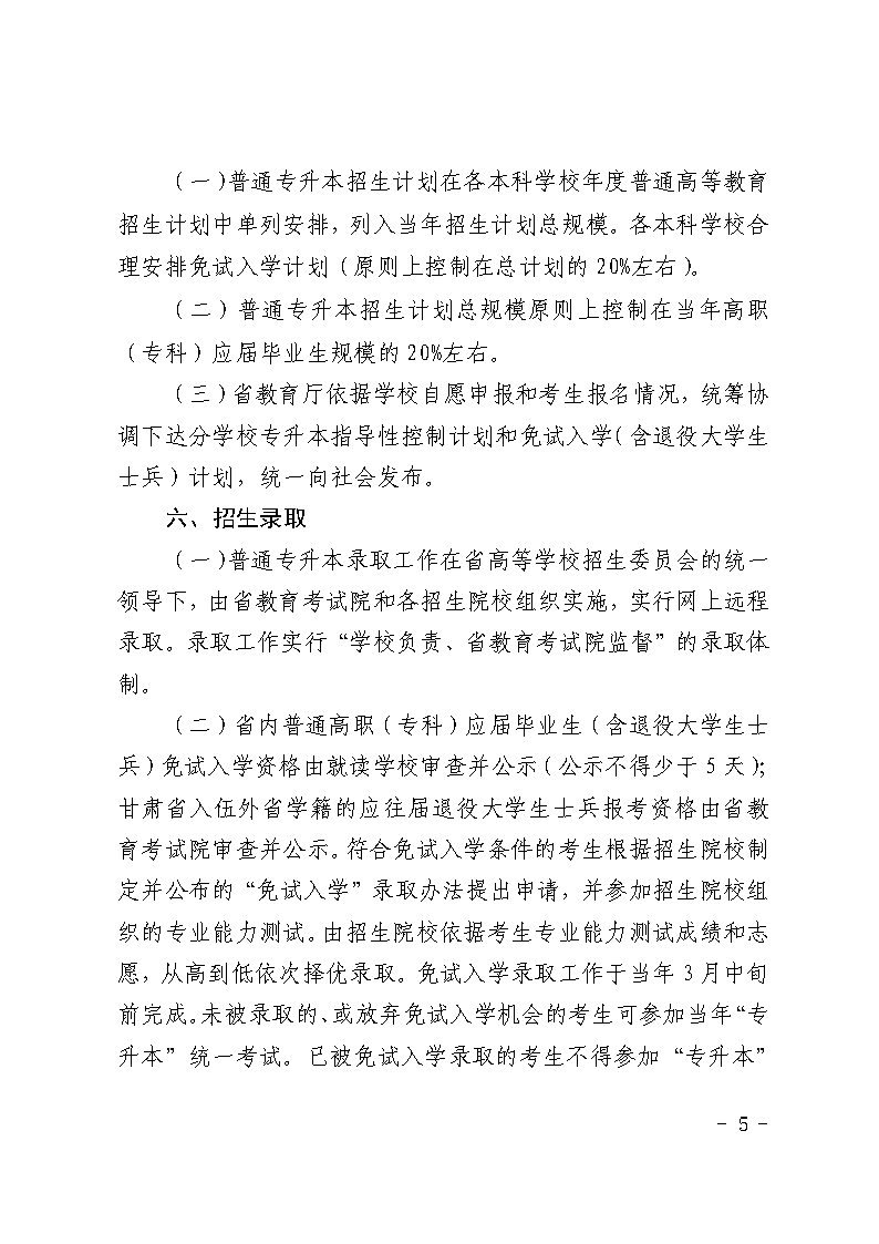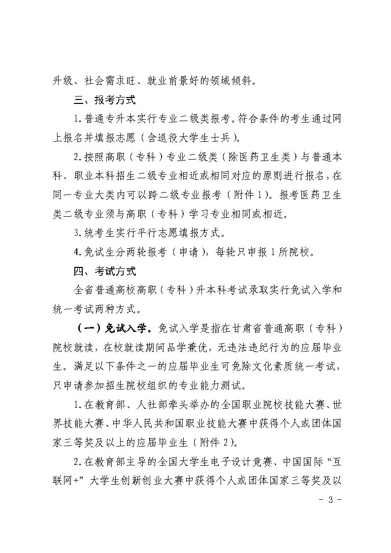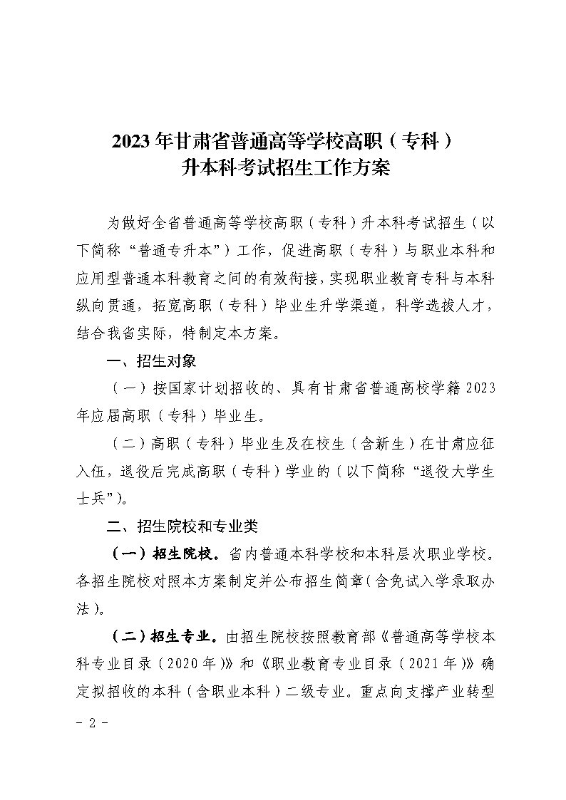 2023年甘肃普通专升本招生工作方案的通知